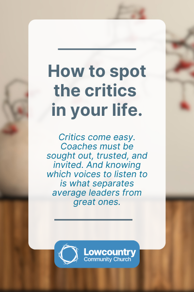 Here’s the truth: critics are common, but coaches are essential. Critics come easy. Coaches must be sought out, trusted, and invited. And knowing which voices to listen to is what separates average leaders from great ones.